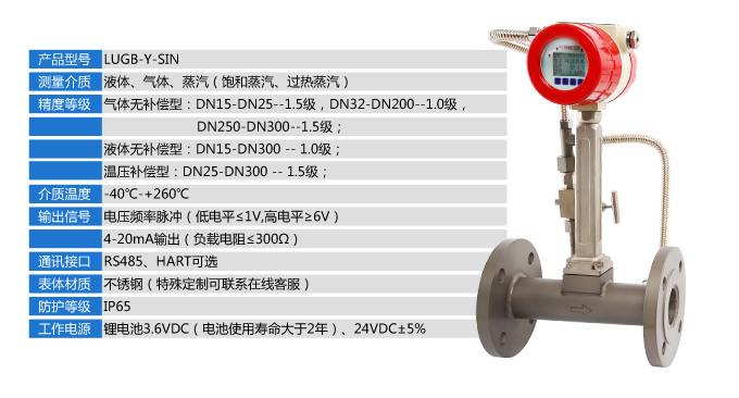 LUGB-Y-SIN抗震振渦街流量儀表廣泛用于供熱公司、熱力公司、化工行業(yè)等行業(yè),對過熱蒸汽、飽和蒸汽、壓縮空氣和一般氣體、水和液體的計(jì)量和控制。加厚本體,可有效避免現(xiàn)場管道振動帶來的數(shù)據(jù)波動和誤差。